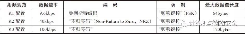 从“国际电信联盟”的这个规范中,我们得知Z-Wave的规范共分为3个参数配置方案,分别称为R1配置、R2配置和R3配置,每一个Z-Wave设备都是根据自己的需要,按照三个无线射频规范中的一个进行操作。这些射频规范定义了物理层无线调制方式、编码机制,以及数据的速率,如表2所示。有消息称,最慢的Z-Wave“R1配置”,正在或已经被“Z-Wave联盟”拒绝通过,虽然遵从该协议的新设备仍在销售的过程中使用此版本的配置。