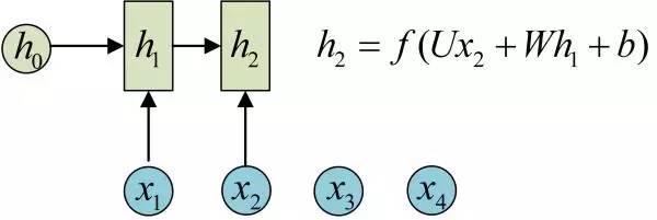 h2的计算和h1类似。要注意的是,在计算时,每一步使用的参数U、W、b都是一样的,也就是说每个步骤的参数都是共享的,这是RNN的重要特点,一定要牢记。
