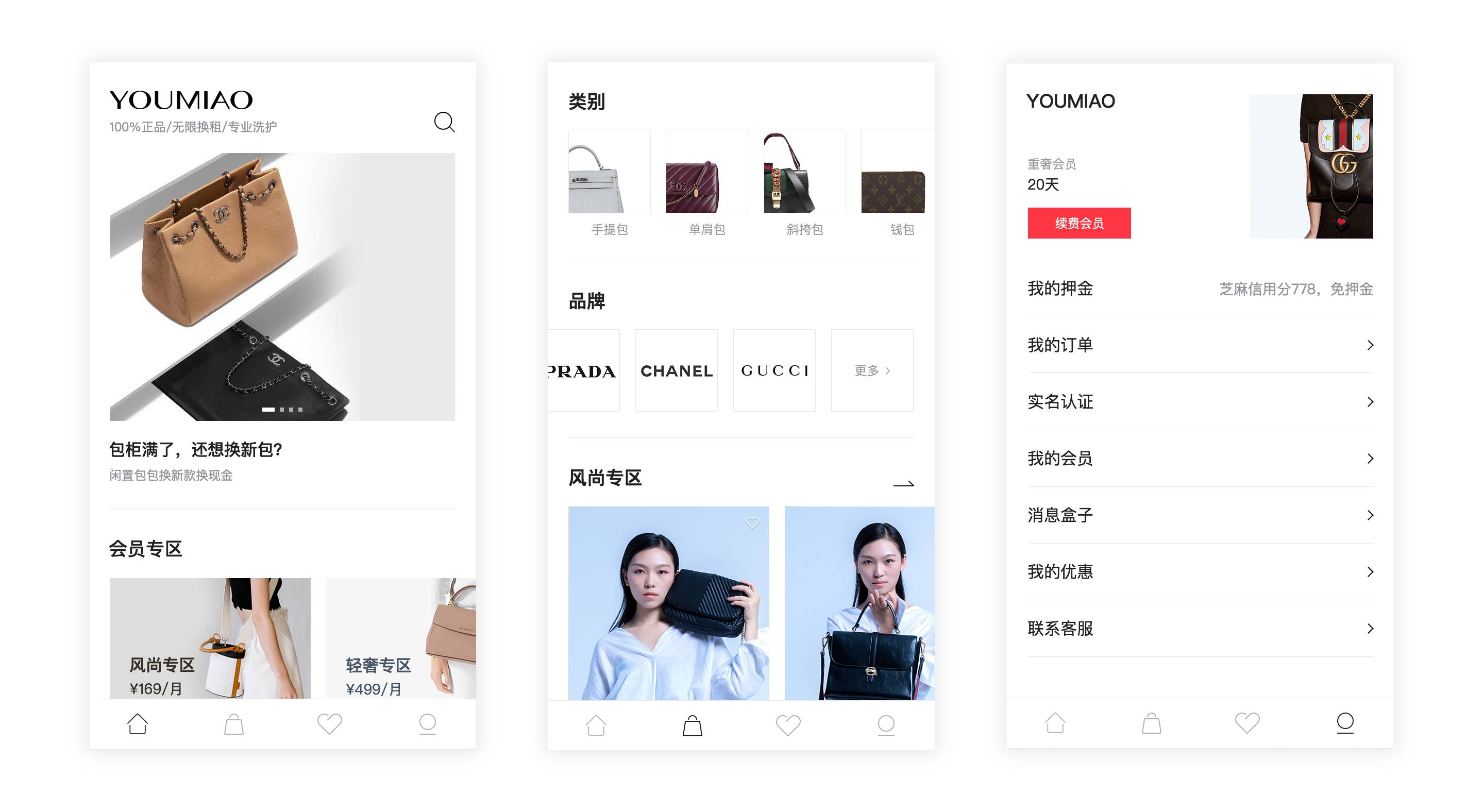 有喵租包以奢侈品女包共享租赁切入,以租代买作为主要业务模式,通过App、H5、微信、微博等渠道搭建女性用户之间的奢侈品包包共享平台。