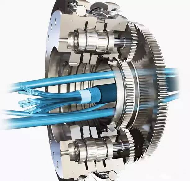 线路能很方便得从减速机中空的部分穿过。这样的设计不仅转矩更大,压缩比更高,接近零侧隙,而且还加载了一组更大的提供更大动量,并免去外部支撑设备的内角支撑轴。这样一来,就进一步节省了成本,简化了最终用户的设计工作。