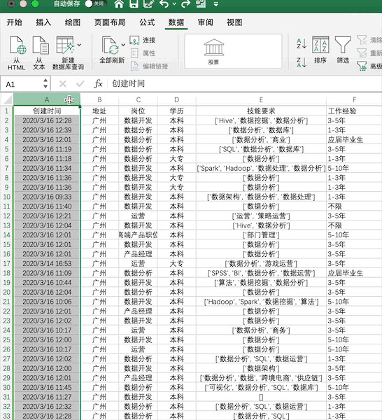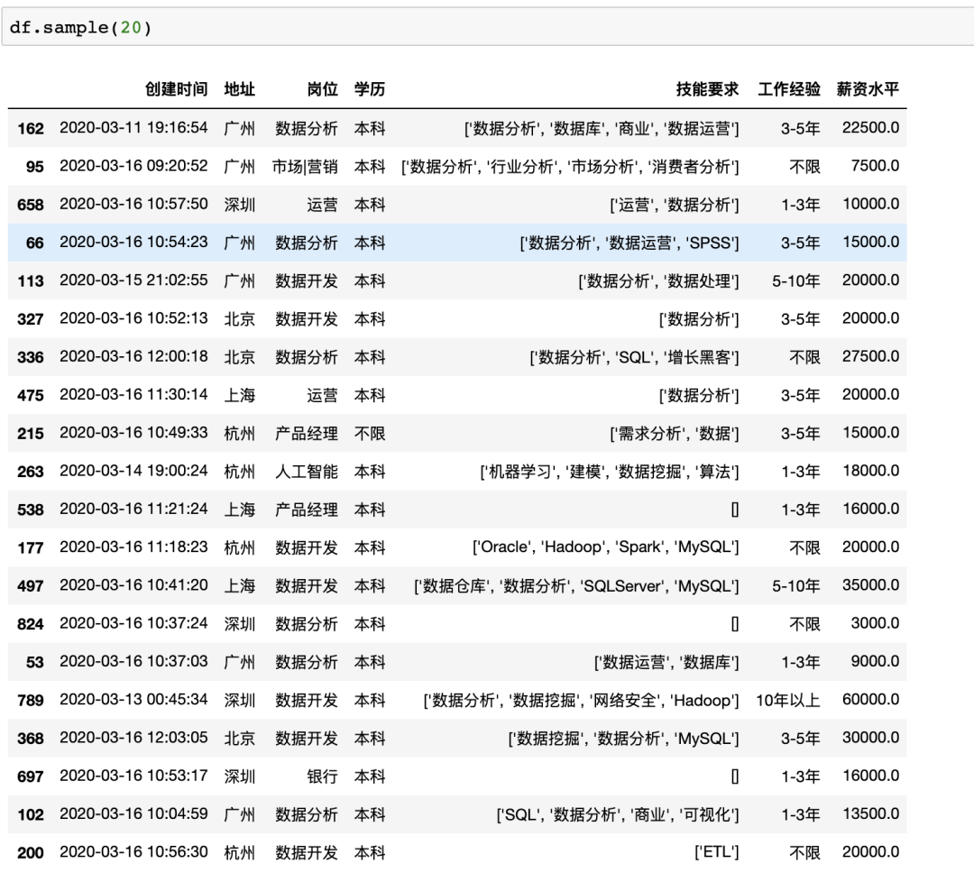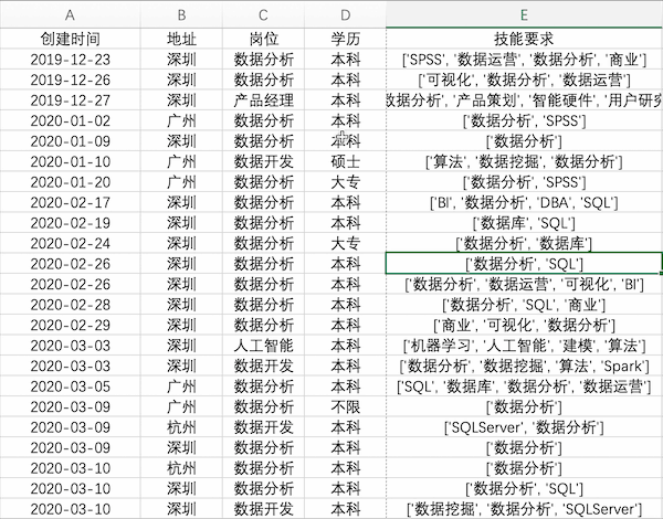 在Pandas中合并多列比较简单,类似于之前的数据插入操作,例如合并示例数据中的地址+岗位列使用df['合并列'] = df['地址'] + df['岗位']