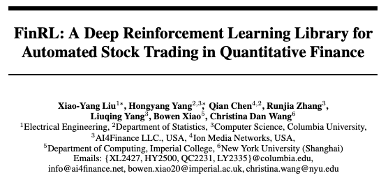 本视频是论文、开源框架作者对FinRL的一个解读,B站链接见视频下方。