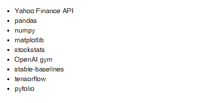 required = {'yfinance', 'pandas', 'matplotlib', 'stockstats','stable-baselines','gym','tensorflow'}