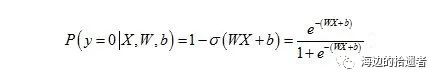 其中ɕ代表Sigmoid函数,则输入向量X属于负类的概率为: