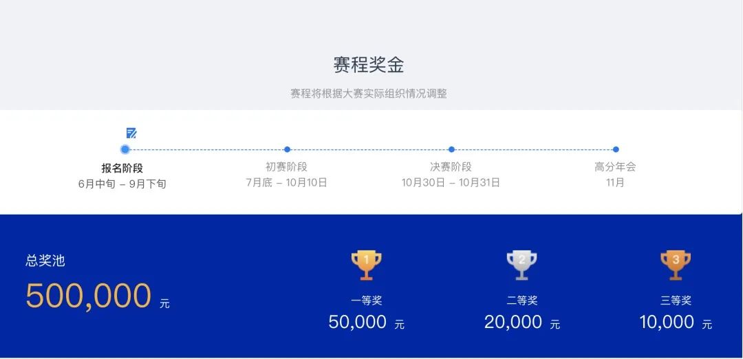 初赛截止时间为2020年10月10日,线下现场决赛时间初定为2020年10月30日至2020年10月31日。初赛截止倒计时19天!
