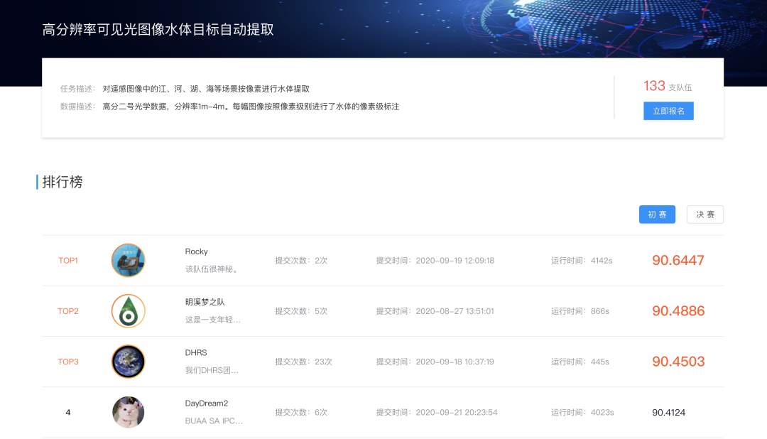 第四届“中科星图杯”高分遥感图像解译软件大赛自2020年6月启动以来,已有超过500支队伍报名参赛,累计提交各类软件作品超过4000次,各赛道排行榜竞争激烈。