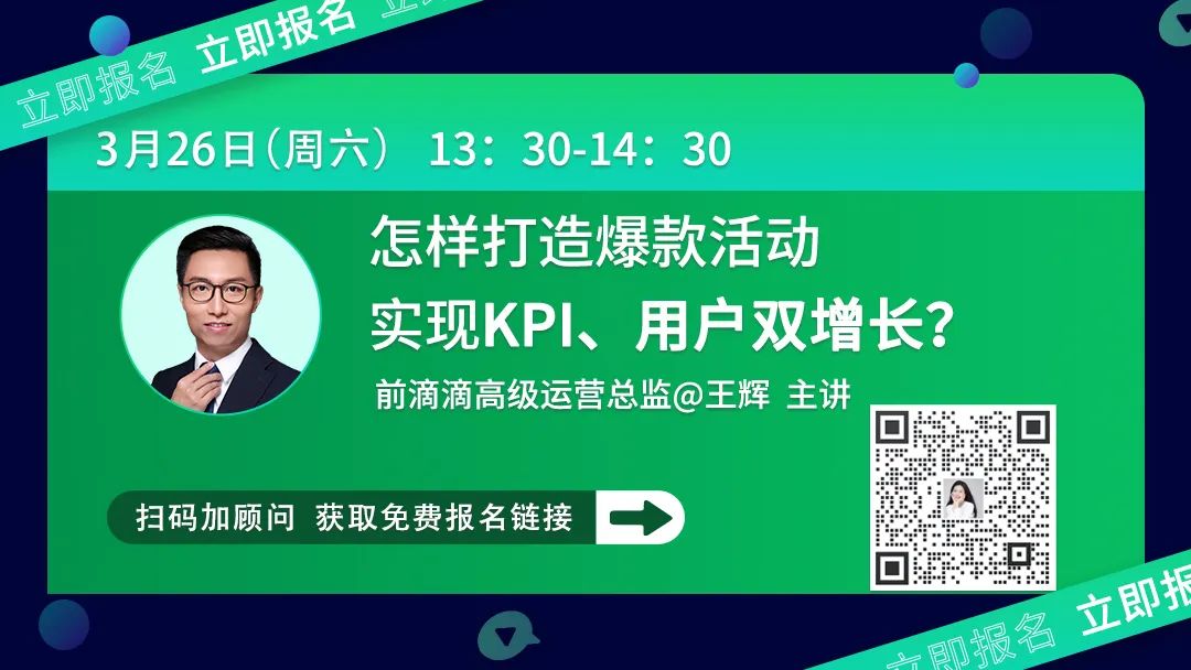 3月26日(周六)13:30,前滴滴高级运营总监@王辉,直播教你如何用游戏化思维轻松玩转活动策划,打造爆款活动,实现用户增长!