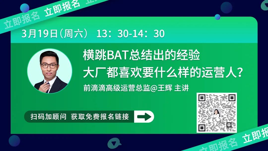 今天下午13:30(3月19日周六),前滴滴高级运营总监@王辉老师,带你深入了解真实的大厂运营工作,严苛的晋升流程以及学习怎样提升能力跳槽进大厂拿高薪!