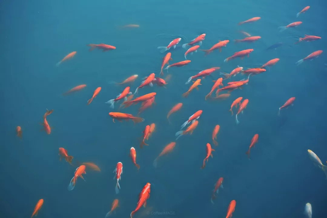 算法工程师与他的好友在公园观鱼。一群色彩斑斓的锦鲤在水面翻腾,追逐着游人们抛下的鱼食。