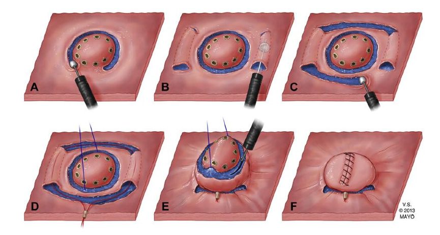 ►图4 胃镜下切除早期胃癌(来源:Mayo Clinic)