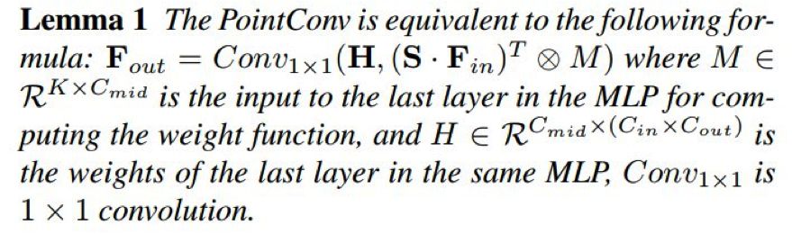 为了解决前面提到的内存问题,我们提出了一个基于 Lemma 1 的内存高效版 PointConv,这也是本文最重要的贡献。