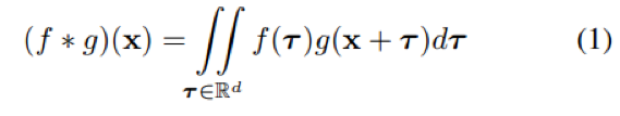 两个连续函数 f(x) 和 g(x) 关于一个 d 维向量 x 的卷积操作可以用下式表示: