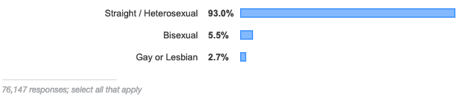 这是第二年询问受访者的性取向,结果与去年基本一致。