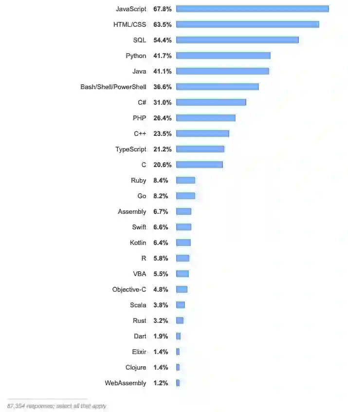 Stack Overflow 作为全球最流行的技术问答社区,其广泛的影响力毋庸置疑,虽然调查结果不能代表开发者社区中的每个人,但相信这些数据很有参考意义。