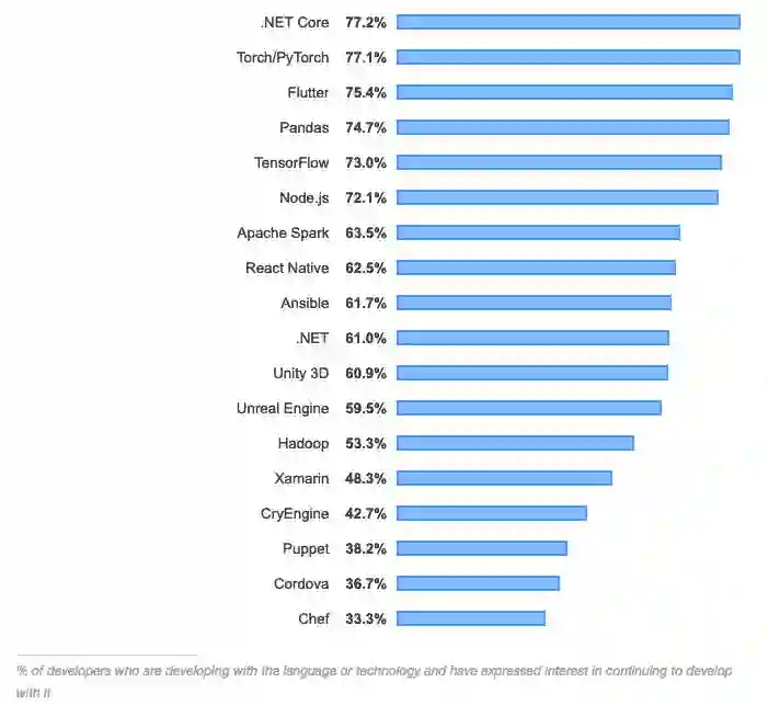 在各自的生态系统中,.NET Core 比.NET 更受喜爱,Torch/PyTorch 比 Tensorflow 更受开发者的喜爱。
