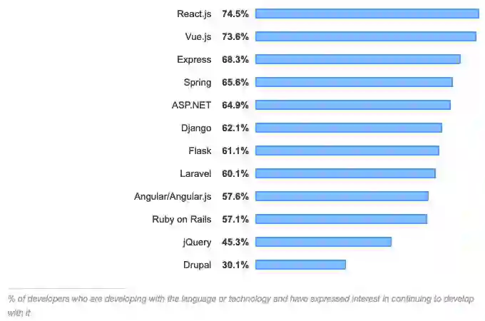 React.js 和 Vue.js 是开发者最喜爱的 Web 框架。