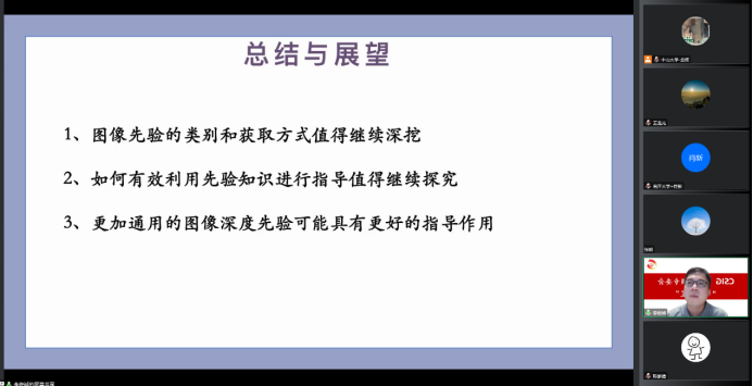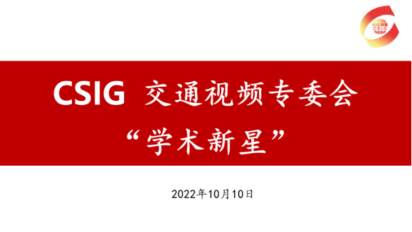 2022年10月10日晚,由中国图象图形学学会(CSIG)主办,CSIG交通视频专委会承办的新一期CSIG-交通视频专委会“学术新星”在线上举行。会议邀请了国防科技大学王龙光博士和上海大学通信与信息工程学院的李俊诚老师作特邀报告,会议由中山大学金枝副教授主持。