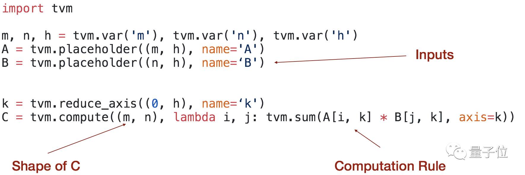 然而,我们发现仅基于IR的计算图不足以解决支持不同硬件后端的挑战。因为单独一个图形运算符,例如卷积或矩阵乘法能以非常不同的方式映射和优化在不同的硬件后端。这些特定硬件优化在内存布局、并行线程模式、缓存访问模式和硬件基元的选择方面,可能会发生巨大的变化。我们希望能以通用方式对此进行明确表达。