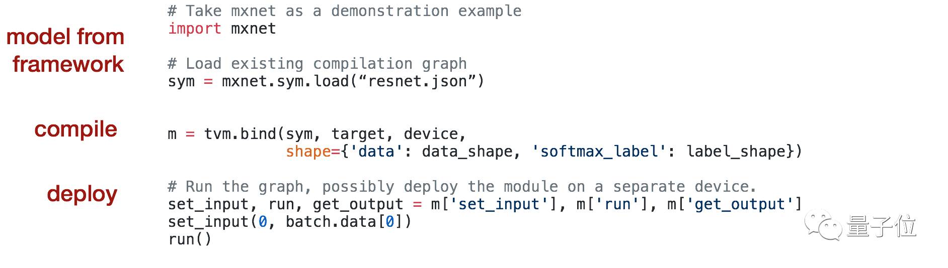 我们还提供了一个轻量级的运行环境,可以让TVM用JavaScript、Java、Python、C++等编译过的代码,运行在Android、iOS、树莓派和网页浏览器等平台上。