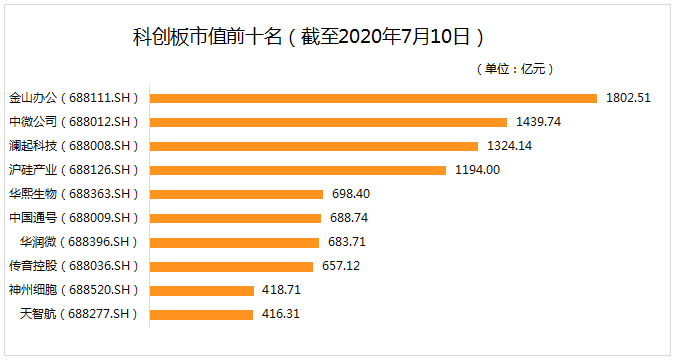 本周科创板上市公司市值前十的公司中,金山办公(688111.SH)摘得桂冠;其后为中微公司(688012.SH)、澜起科技(688008.SH),以及沪硅产业(688126.SH)等。