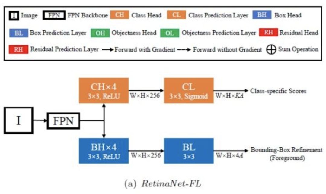作者首先引入了另一种不同于Focal Loss处理样本不平衡问题的方法,即借鉴YOLO的方法,在head部分同时引入Objectness subnet的分支,在推理的时候采用如下公式: