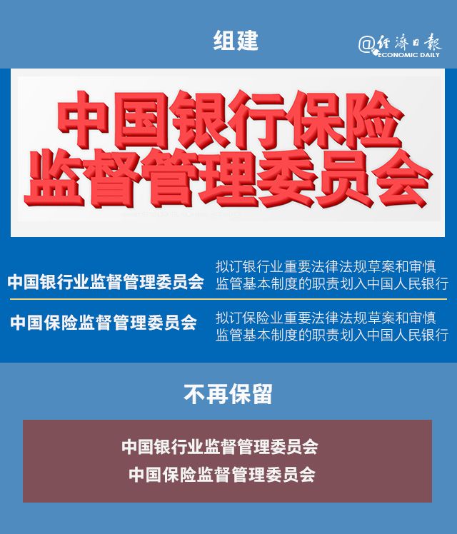 根据方案,将组建中国银行保险监督管理委员会,不再保留银监会、保监会。