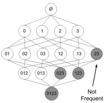 2. 如果一个项目集合是频繁集合,那么它的任何非空子集也是频繁集合;