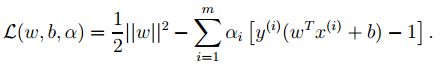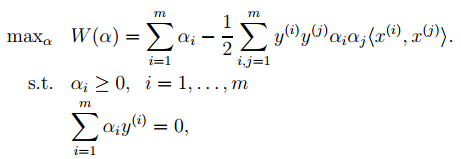 那个尖括号我们可以用核函数代替,这也是svm经常和核函数扯在一起的原因。