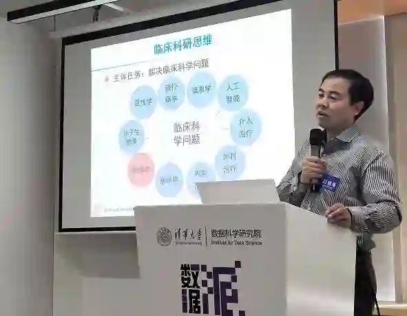 随后,清华大学医学院生物医学工程系副教授、北京清华长庚医院放射科副主任、数据科学研究院RONG教授赵锡海发表了题为“基于影像学的临床科研设计方法和实践案例”的演讲,与在座的研究学者及医师代表分享了如何在医学领域搞科研。