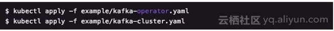 一般来说,无论这个分布式应用项目有多复杂,只要它为用户提供了 Operator,那么这个项目的使用就只需要两条命令即可搞定,以 Kafka 为例: