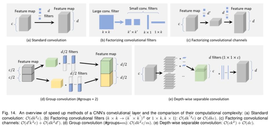 因为目前CNN检测方法是主流,作者列出了近年出现的卷积计算的一些加速方法及其时间复杂度: