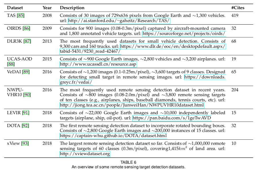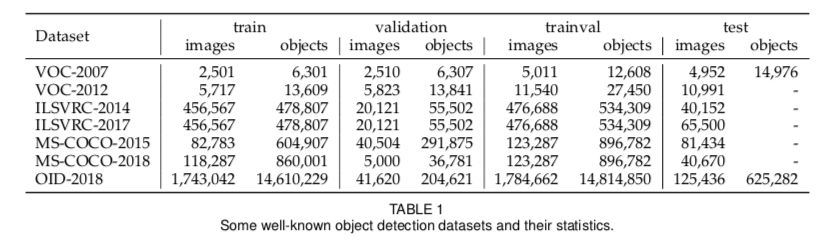 作者总结了通用目标检测及几个特定目标检测的数据集。