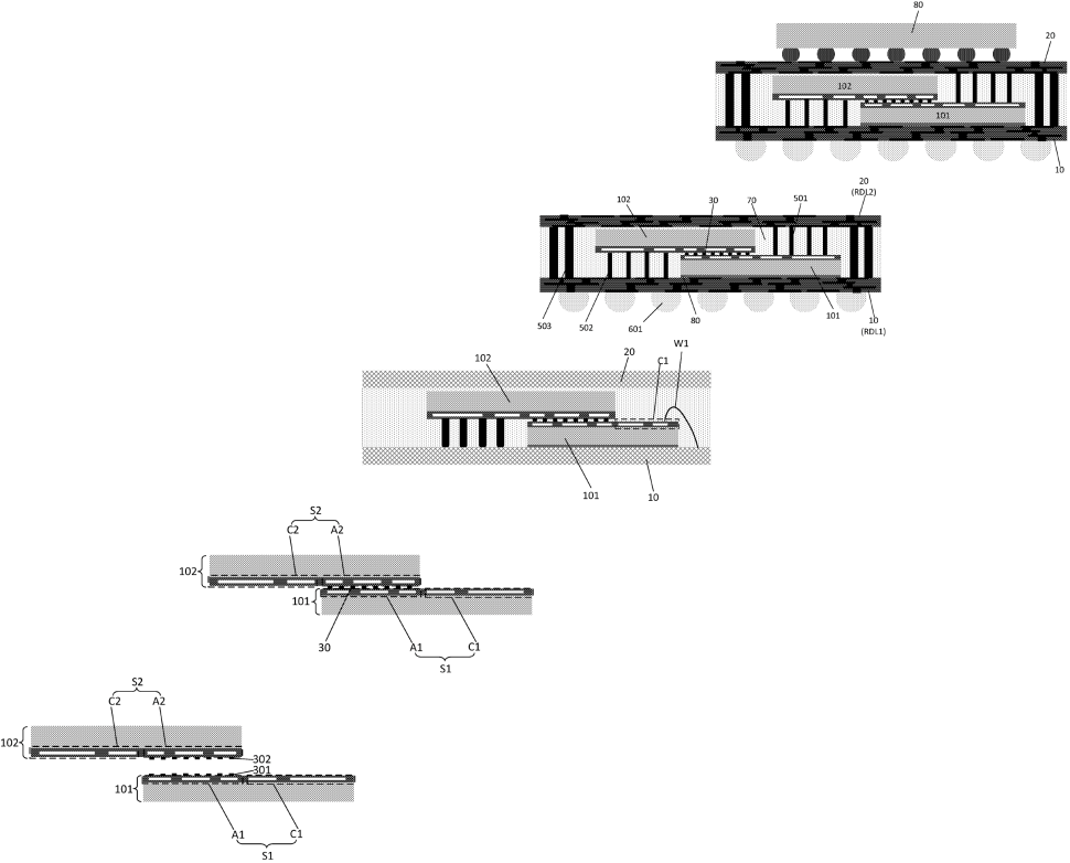 同时,两个或更多的小芯片仍然有自己的电力传输的PIN,然后使用各种方法连接到自己的再分配层 (RDL)。