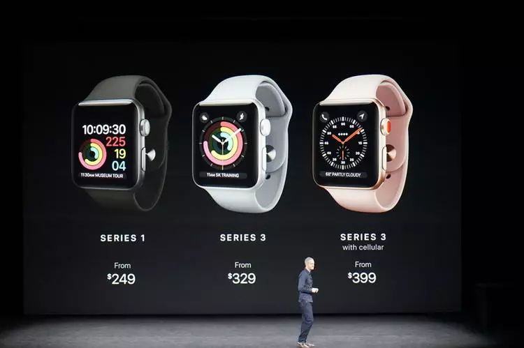 让我们盘点一下 Apple Watch 发布的时间表:2014 年 9 月,苹果发布了 Apple Watch 一代(次年 4 月正式发售),2016 年 9 月 Apple Watch Series 1/Series 2 同步发售,2017 年 9 月 Apple Watch Series 3 发售。
