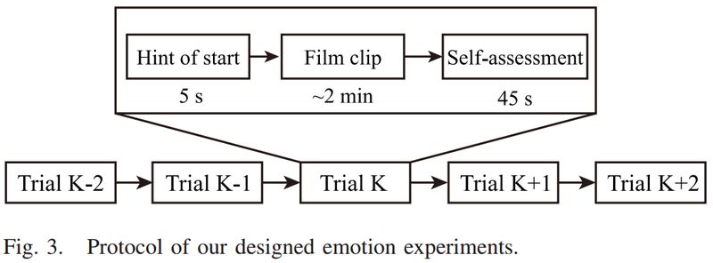 数据记录实验共包括 15 名(8 名女性,年龄在 20~24 岁)被试,均为右利手。每位被试参与实验 3 次,共获得 45 次实验数据。本文使用的数据集(SEED-IV)将作为 SEED [1] 的子集可免费获得用于学术研究。