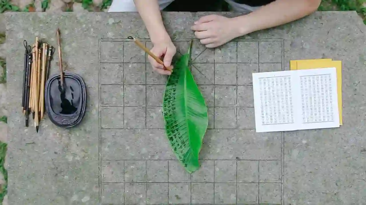 在展览现场播放的短片中,李明桓身着素衣,凝神书写,字有时写在芭蕉叶上——那是唐代书法家、僧人怀素的做法。在为展览作品集撰写的前言中,阿里巴巴集团合伙人王帅形容,李明桓「干干净净,就像早晨,在树叶上凝聚了一颗完美的露珠,神完气足」。