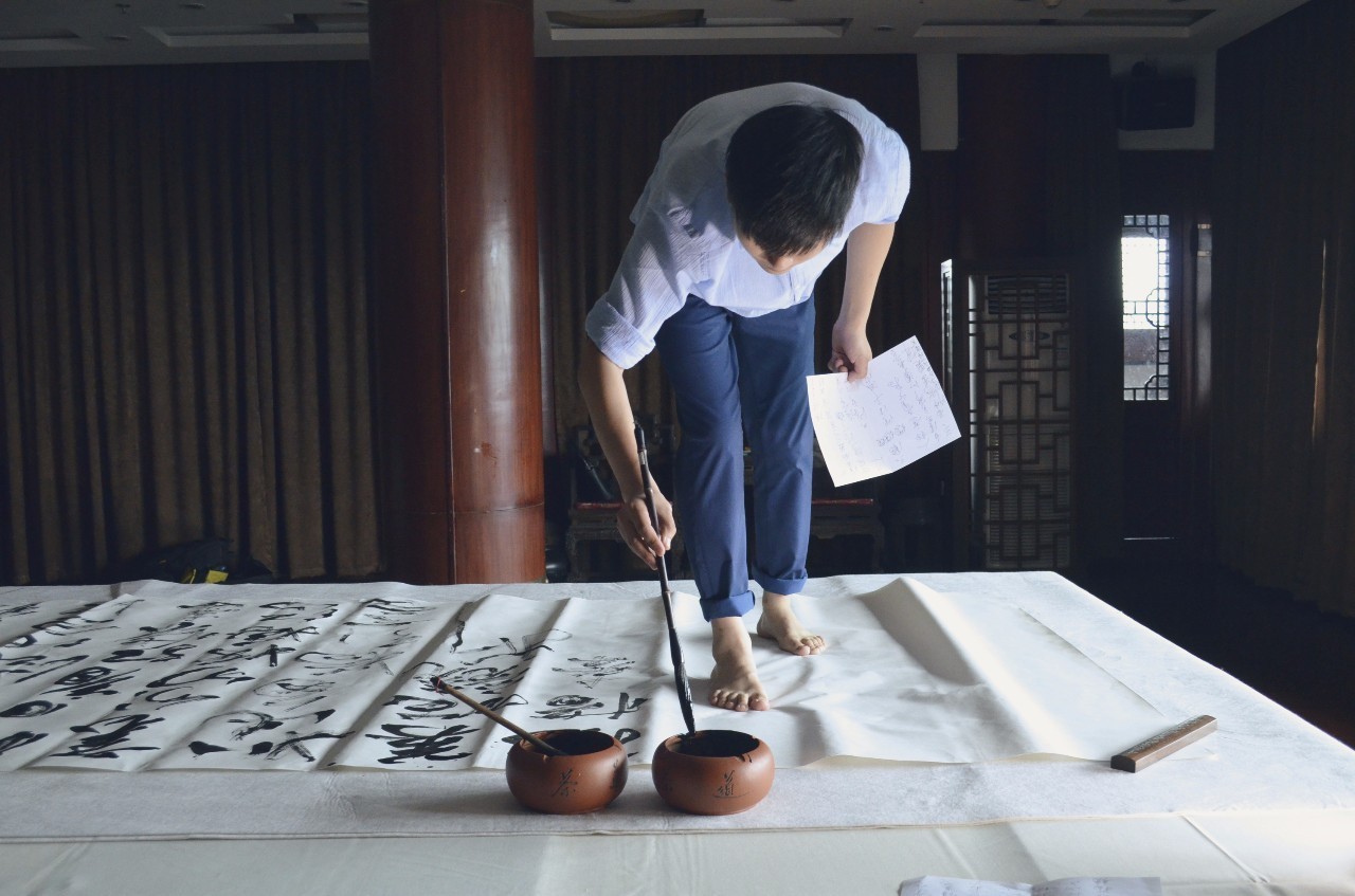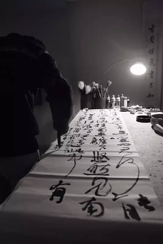 练字时,李明桓可能两个月写同一种书体,如同长期冲刺,「每天锤炼这样的技法和意境,你短程的爆发力会强一些,创造出来作品会优秀一点」。而把长期的练习与积累表达出来,写成作品,确实需要一气呵成与悉心雕琢。