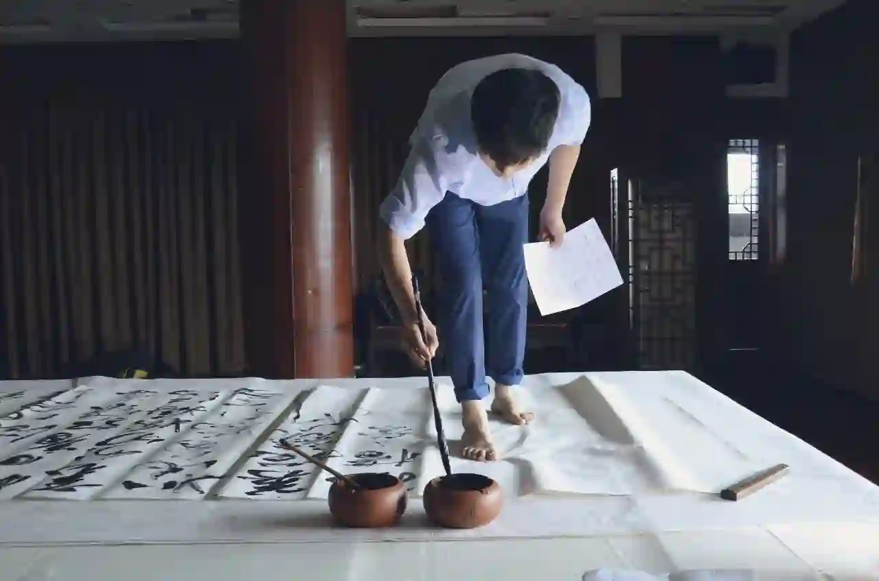个展开始前,书法家李明桓销毁了自己的许多书法作品。在数十位长辈、师友和学生面前,厚厚一卷作品被塞进了碎纸机。那些耗费数日写成的作品,瞬间变成了一根根狭长的废纸条。
