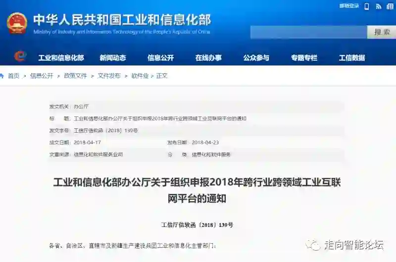 2018年跨行业跨领域工业互联网平台申报工作启动