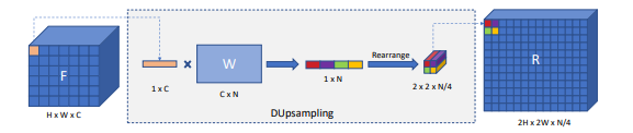 其中以两倍为例,DUpsample的操作如下图所示: