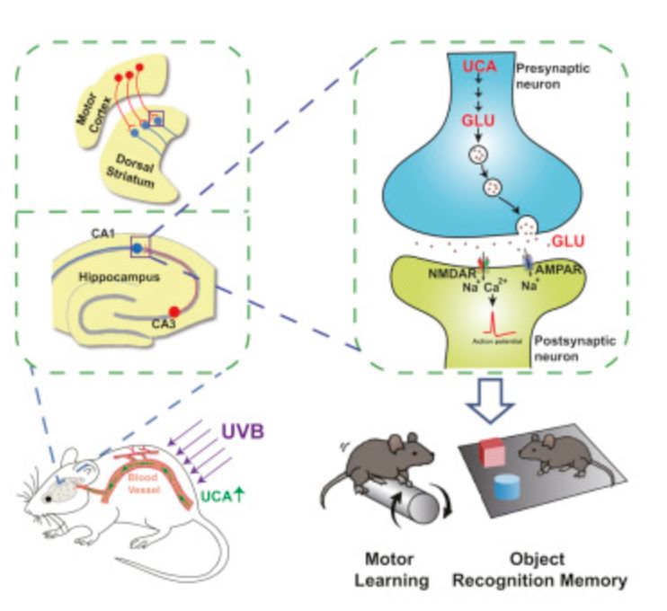 研究人员发现紫外光照射会激活小鼠体内一种分子通路,增加大脑中谷氨酸化合物的产生,提高动物学习和记忆的能力。