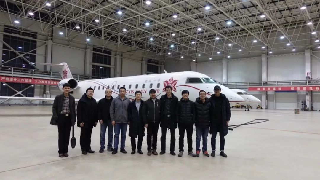 随后,同学们来到中一太客商务航空有限公司(简称“中一航空”)进行调研。据介绍,中一航空是国内首家民营公务机公司,拥有一支由庞巴迪挑战者850、604、605,环快5000、6000、XRS和湾流200等多机型组成的成熟大规模机队,可全方位提供公务机包机、托管、引进、维修定检、航材进出口、机库存放、五星级酒店住宿等完整服务产业链。同学们在中一航空机库近距离观摩了庞巴迪挑战者850型公务机,该机库总占地面积74000平方米,可同时停放各型公务机17架,是全球最大的公务机机库。