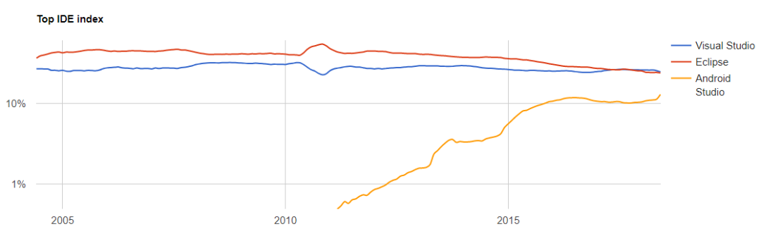 排名前三的 Visual Studio、Eclipse 和 Android Studio 走势图: