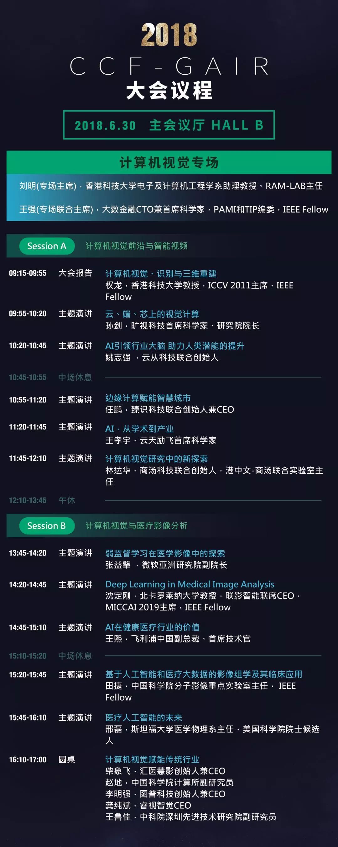 6 月 30 日,CCF-GAIR 大会进行到第 2 天,计算机视觉专场如期举行。本专场由两大议题组成,分别是上午场“计算机视觉前沿与智能视频”以及下午场“计算机视觉与医疗影像分析”。本文为计算机视觉专场上半场的精选内容。