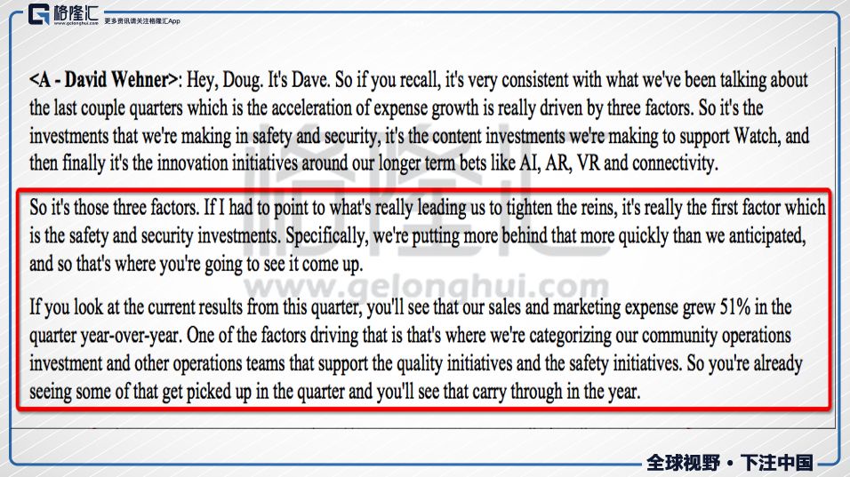 管理层电话会议里给的解释是:新闻质量和安全的投资计入了这一部分。