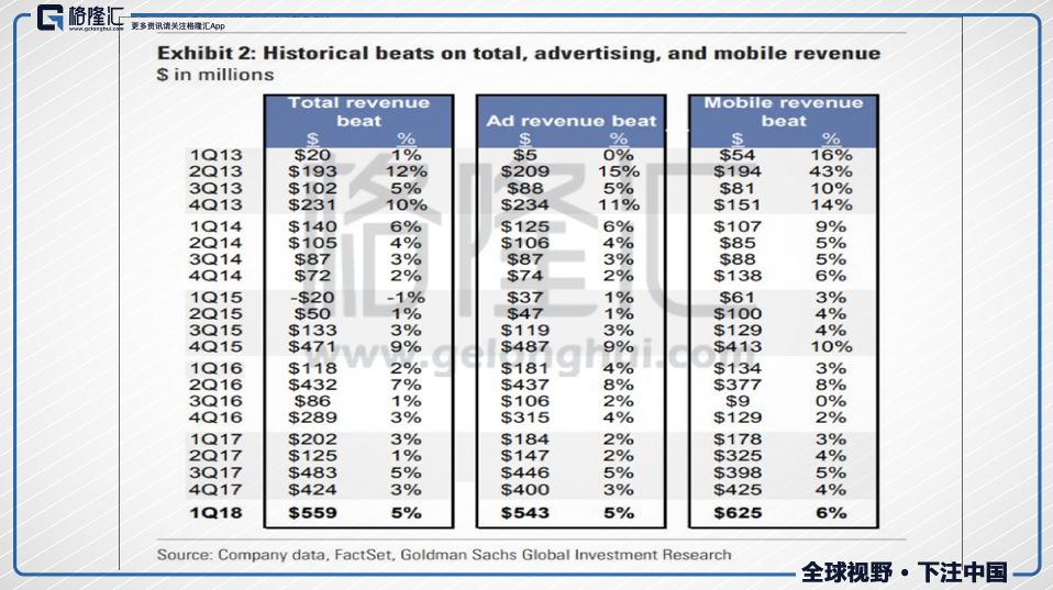 个人观点:收入,eps,运营利润全部beat预期,数据泄露丑闻几乎对业绩毫无影响。值得强调的是,在2017年Q4,管理层预计2018年总的费用上升45%-60%,这个Q的总费用同比上升39%,所以这个季度的费用增幅是大幅度小于市场预期的。但是在电话会议里,管理层称2018年的总费用的guidance从45%-60%,上调到50%-60%,并且强调Q2后费用会加速上升。下图是电话会议里的原文: