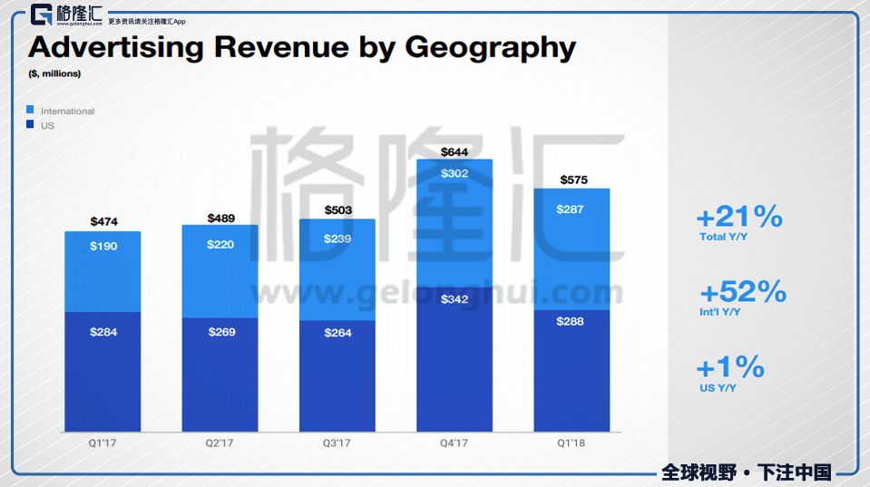 twitter财报的致命伤就是这张图:北美的广告收入同比增长1%。在谷歌广告收入增速24%,FB增速49%的情况下,Twitter的广告收入增速1%。不用多少了吧。你国际业务多强都没有用,因为北美就是全球广告市场的缩影。
