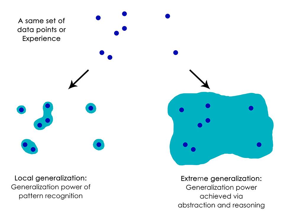 人类的能力远不止对刺激做出回应,因为深网或者昆虫也可以。人会对目前的情况形成抽象复杂的模型,并根据这些模型来预测不同的未来,且进行长期的规划。人类有能力将已知的概念融合在一起,来表现以前从未经历过的事情,比如穿着牛仔裤的马,或者想象如果中了彩票会做什么。这种处理假设的能力,使我们的心理模型空间远远超过了我们可以直接体验到的一切。这种行为被称为极端泛化。