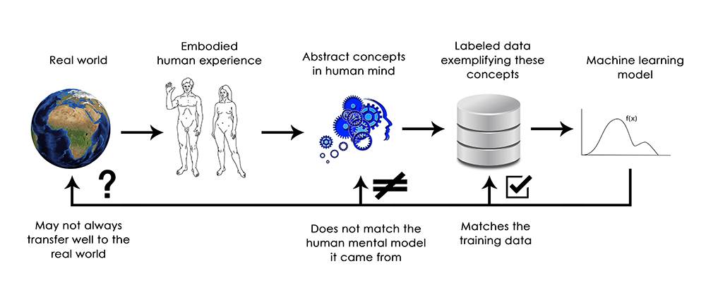 现阶段人工智能的一个不得不面对的问题在于研究者们误解了深度学习模式的做法,并高估了自己的实力。人类思想的一个根本特征是我们的“主观意识”,我们倾向于对我们周围的事物投射意向,信仰和知识。在一个石头上画一个笑脸感觉石头都变高兴了。同样在深度学习中,当我们有能力成功地训练一个模型来创作描述图片的标题时,我们误认为该模型“理解”图片的内容以及它产生的标题。然而,当轻微改变训练数据中存在的图像时,研发者会非常惊讶的发现模型开始创作完全荒谬的字幕。