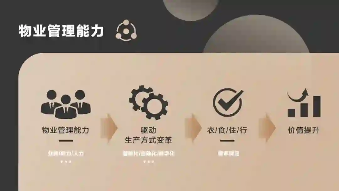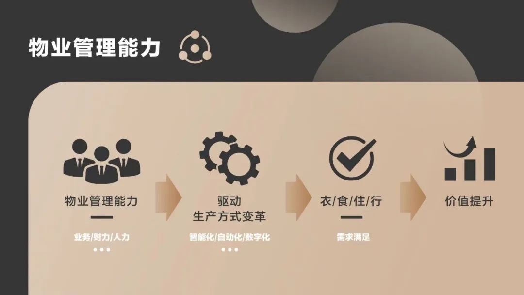 因此,对于物业来说,真正的难点在于提升自身的管理能力,从而驱动行业里生产方式变革,做好需求满足管理、末端履约以及进一步的复制裂变。